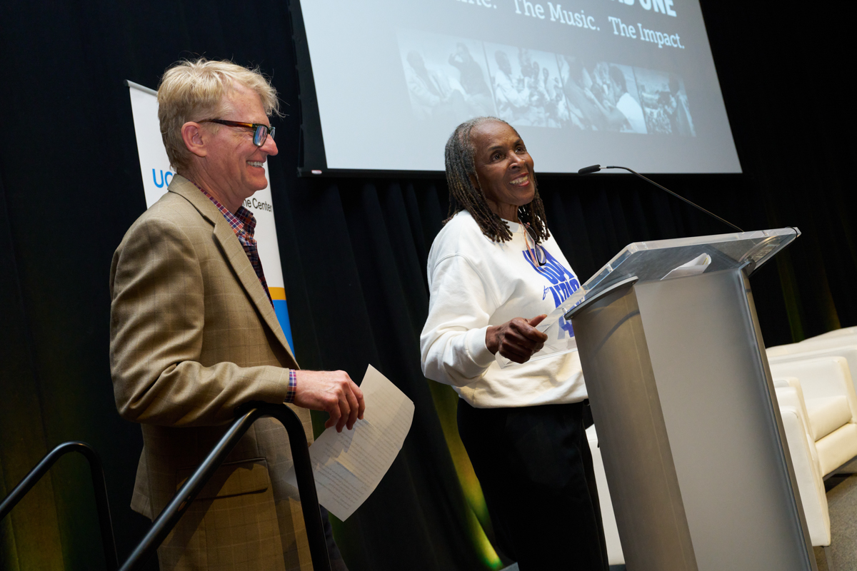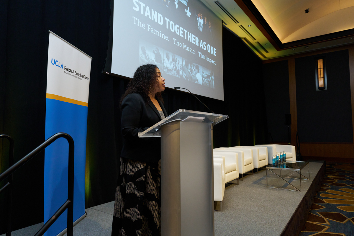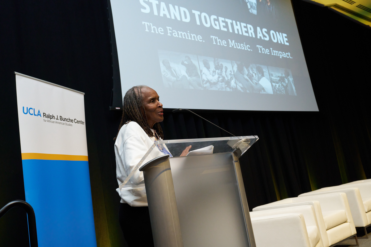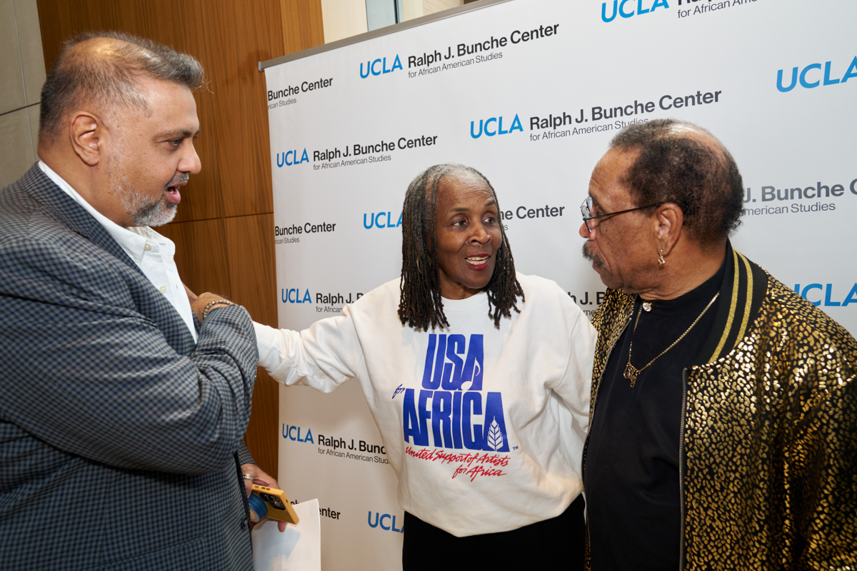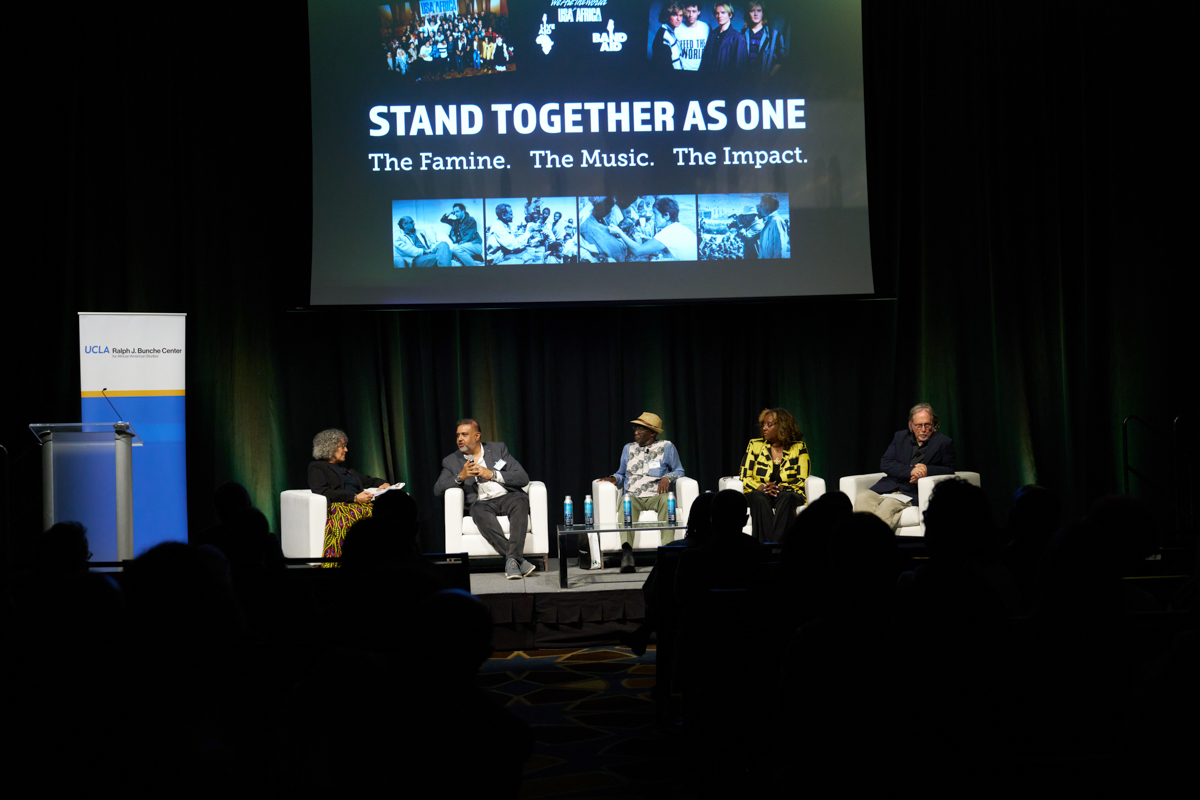 On April 14, 2025, the Ralph J. Bunche Center for African American Studies hosted a special event commemorating the 40th anniversary of We Are the World and the founding of USA 4 Africa. The event featured a screening of Stand Together As One: The Famine, The Music, The Impact – a powerful new documentary produced by Chip Duncan and Salim Amin tracing the origins and enduring legacy of the historic anthem We Are the World that united the globe through song and activism.